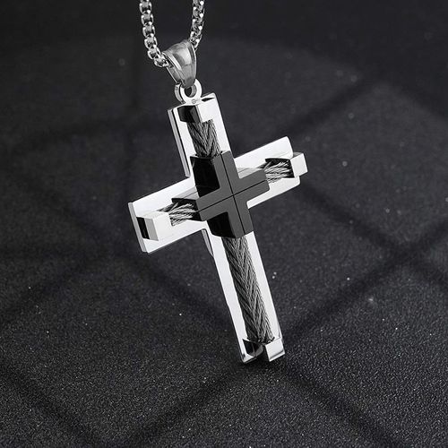 Men's Stainless Steel Byzantine Necklace – 24-Inch Adjustable Length, Black Cross Pendant – Everyday Wear Jewelry & Gift Choice